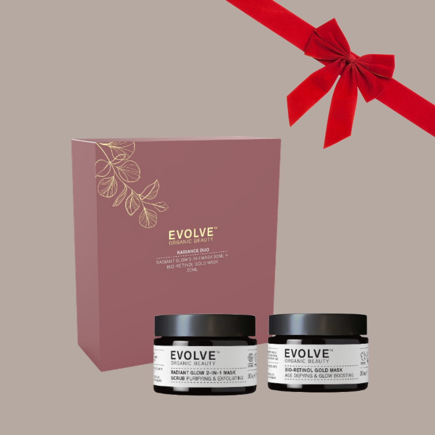 Brillez tout au long de la saison. Profitez d'une combinaison parfaite d'exfoliation et de nutrition. Le masque 2-en-1 Radiant Glow élimine l'aspect terne de la peau, tandis que le masque Bio-Rétinol Gold infuse la peau de rétinol végétal pour un teint plus lisse et plus lumineux.
